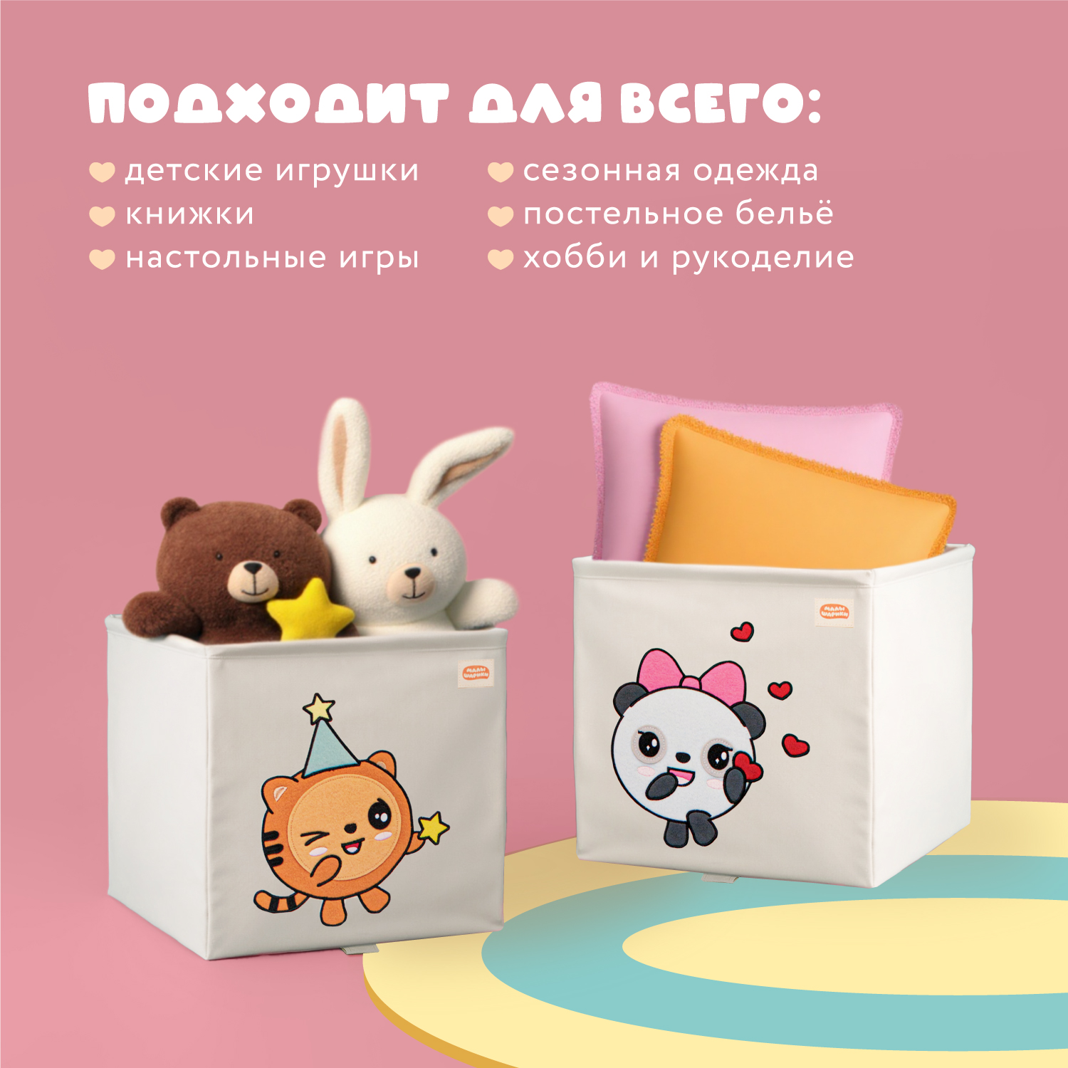 Интерьерная коробка для хранения «Тигруня со звёздочкой» от бренда Abumba (Абумба). Удобная, качественная, детская! Очаровательная Тигруня и другие герои из серии «Малышарики» берегут вещи детей, помогают поддерживать порядок и служат стильным декоративным дополнением детской комнаты! – Подходит для стеллажа стандартного размера. Параметры квадратного короба – 32,5x32,5x32,5 см. – Внутри – устойчивые стенки из плотного пластика и тканевая обшивка. Стеллажный кофр можно мыть, чистить и стирать вручную! – Легко собирать и складывать. – Специальная петелька снизу, чтобы без проблем доставать ящик с полки. – Рисунок: фетр и вышивка гладью. Мягко и приятно на ощупь! – Идеально для хранения одежды, игрушек, конструкторов и мелочей. – Компактный бокс органично впишется в детскую комнату небольшой площади. А ещё его можно использовать в шкафу для организации гардероба. – Соберите картонную мини-версию 10 х 10 х 10 см, которую вы найдёте на упаковке. Пустяк, а сколько радости! Декор для дома от Abumba – отличное решение для порядка и уюта.