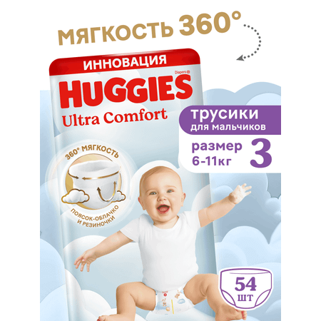 Новые подгузники-трусики Huggies Ultra Comfort для мальчиков дарят мягкость на 360°: ультрамягкие внутри и снаружи, они словно облачко обнимают вашего малыша. Сделанные из нежных материалов резиночки вокруг ножек и воздушный поясок-облачко снижают давление на кожу и риск появления натираний и красных следов даже при длительном ношении, при этом надёжно фиксируя трусики на ребёнке.