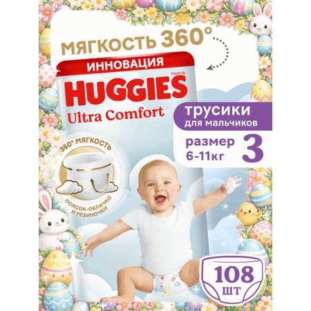 Новые подгузники-трусики Huggies Ultra Comfort для мальчиков дарят мягкость на 360°: ультрамягкие внутри и снаружи, они словно облачко обнимают вашего малыша. Сделанные из нежных материалов резиночки вокруг ножек и воздушный поясок-облачко снижают давление на кожу и риск появления натираний и красных следов даже при длительном ношении, при этом надёжно фиксируя трусики на ребёнке.