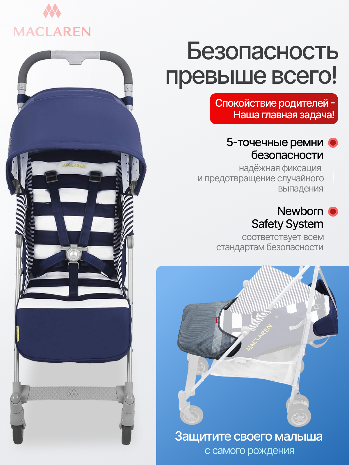 Цена на Коляска прогулочная Maclaren Quest ARC Regency Stripe синий - 45050 ₽.