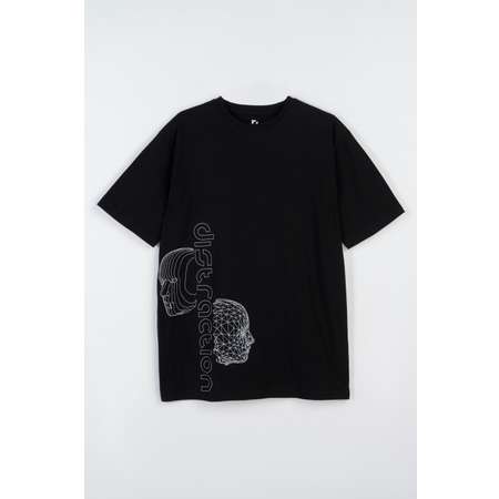 Черная футболка с оригинальной графикой спереди — это сочетание стиля и комфорта. Свободный крой и круглый вырез горловины обеспечивают свободу движений, а усиливающая окантовка сзади на вырезе горловины предотвращает его растягивание.