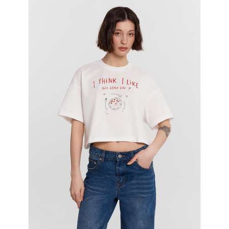 Футболка для женщин хлопковая укороченная с надписью от белорусского бренда Mark Formelle. Модель оверсайз кроя с округлым вырезом и коротким рукавом, отлично держит форму и не сминается. Майка женская выполнена преимущественно из хлопка, благодаря чему, она отлично дышит и идеально подойдет для лета. Изделие представлено в широкой размерной линейке (также есть большие размеры, Plus size). Выбирайте размер в размер.