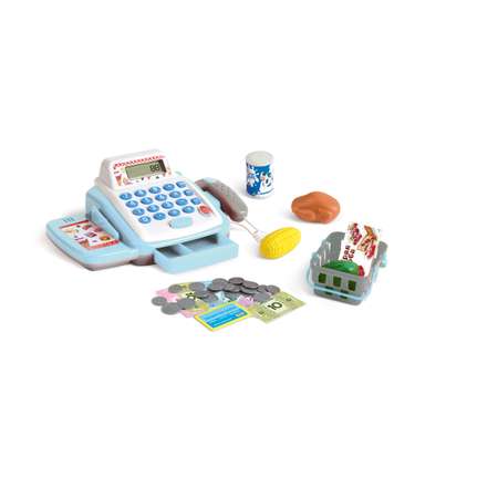 Набор Demi Star предназначен для сюжетно-ролевых игр, посвященных работе современного магазина. В комплект входит электронная кассовая станция с функциональным калькулятором, сканером для считывания штрих-кодов, звуковыми эффектами и лентой для выкладывания покупок. Прилагается набор продуктовых товаров, выполненных из пластика: курица, овощи и другие. Их можно сложить в специальную корзину. Все предметы имеют оптимальный для детских рук размер и яркую цветовую гамму. В качестве платежного средства предусмотрены муляжи банкнот и монет, касса оснащена выдвигающимся отсеком для денег.