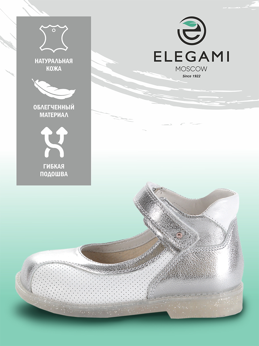 Ваша малышка будет в восторге от этих очаровательных бело-серебряных туфелек, созданных специально для юных модниц! Изысканное сочетание белоснежной кожи с элегантными серебряными акцентами превращает модель в настоящий must-have сезона весна-лето 2025. Натуральная кожа премиального качества - дышащая, мягкая и гипоаллергенна. Удобная липучка позволяет легко регулировать посадку и учит самостоятельности. Закрытая пятка и круглый мысок - надежная фиксация и защита ножек. Восхитительные туфельки - идеальный подарок для вашей маленькой леди. Они подчеркнут ее индивидуальность и позаботятся о комфорте в течение всего дня.