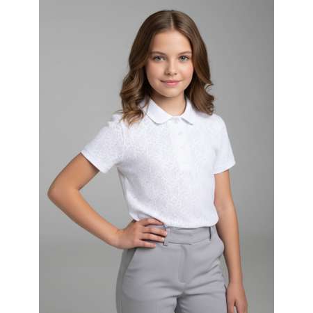 Блузка для девочки белая нарядная с коротким рукавом и отложным воротничком выполнена из мягкого трикотажа кулирка. Поло в школу для девочки из хлопка приятная на ощупь и позволяет коже дышать, выгодно подчеркивая фигуру.