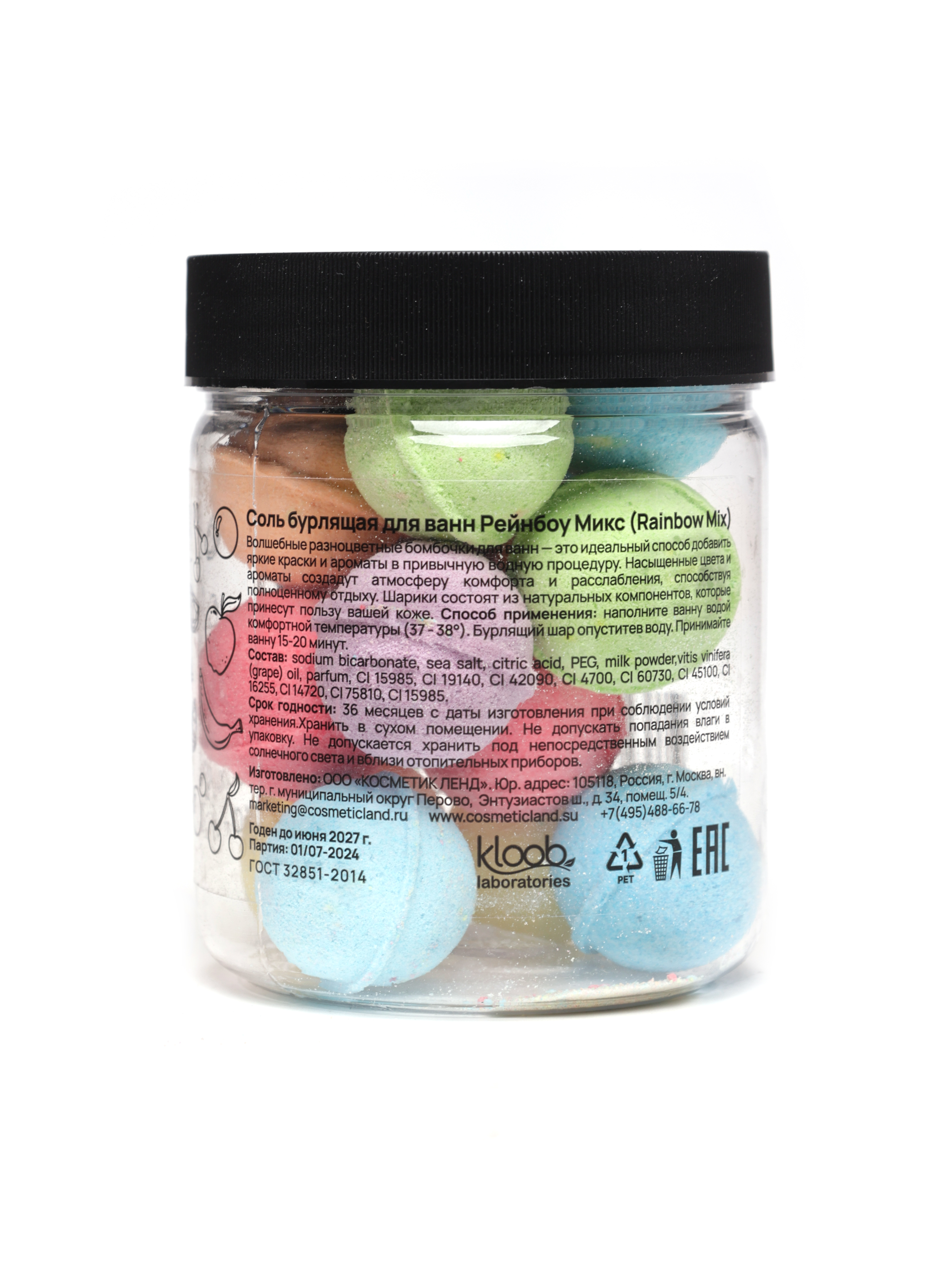 Натуральная соль с фруктовым ароматом — абрикос, виноград, яблоко, банан и аромат морского бриза подарят свежесть и радость. Яркие нотки апельсина и черники в сочетании с загадочными оттенками кокоса сделают купание роскошно-тропическим путешествием. Представьте только весело бурлящие шарики и море пены!