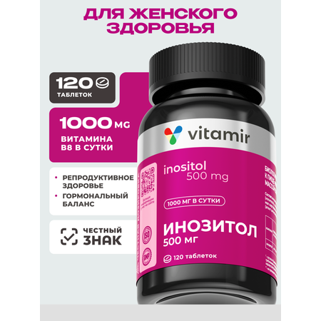 Витамины для женского здоровья VITAMIR Инозитол 500 мг, 120 таблеток
