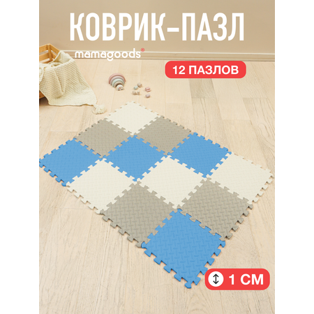 Развивающий коврик-пазл детский 12 деталей голубо-серый ассорти Mamagoods 84х111 см