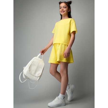 Костюм для девочки подростка создан, чтобы ей было абсолютно комфортно дома или на улице. Укороченная футболка и шортики клеш — идеальный тандем для активных и свободных от условностей подростков.