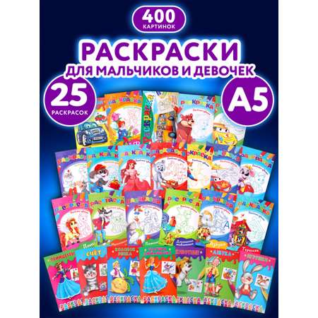 Раскраски детские Prof-Press набор Для девочек и мальчиков А5 25 штук