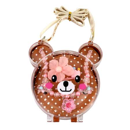 Яркий набор аксессуаров Demi Star Brown создан специально для юных модниц, которые обожают наряжаться и создавать новые образы для себя и своих подружек. В этом комплекте есть всё для игры в стиль: красивое ожерелье и изящный браслетик, две удобные резиночки для создания хвостиков и косичек, две надежные заколочки, которые не выскальзывают даже из самых тонких волос, а также пара стильных колечек и сережек. Все предметы выполнены в милом дизайне и изготовлены из легких и безопасных материалов — полипропилена и акрила, что делает их оптимальными для нежной детской кожи. Все предметы аккуратно упакованы в сумочку, выполненную в форме головы мишки и снабженную регулирующимся ремешком.