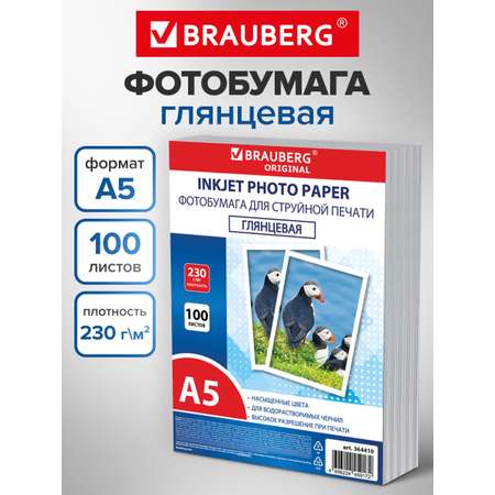 Фотобумага Brauberg глянцевая А5 набор 100 листов односторонняя