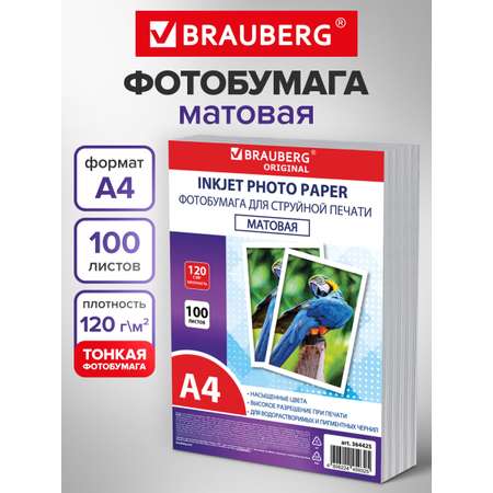 Фотобумага Brauberg матовая А4 набор 100 листов односторонняя