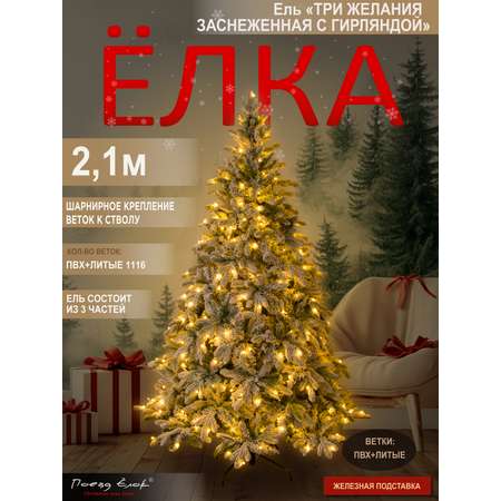 Ель Три желания Поезд Ёлок заснеженная с гирляндой 210 см