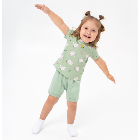 Комплект летний для девочки состоит из футболки и шорт. Пояс шорт на резинке.