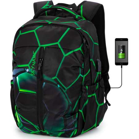 Рюкзак школьный для мальчика 20 л с твердой анатомической вентилируемой спинкой SkyName (СкайНейм), подходит для подростков и учеников средних и старших классов. Такой рюкзак молодежный с вместительным отделением и удобными лямками понравится мальчикам и ученикам начальной школы. Здоровое ношение подросткам обеспечивает жесткая спинка анатомической формы с плотными вставками из мягкой дышащей губки и небольшой вес 800 гр. Широкие плотные лямки S-образной формы с грудным креплением-стяжкой (фастекс) и мягкими вставками не соскальзывают при ношении. Нагрузка по спине ребенка распределяется равномерно. Рюкзак подростковый для мальчика из водоотталкивающей ткани имеет одно большое отделение для учебников или гаджетов с диагональю до 15”. Спереди расположен небольшой карман на молнии для разных мелочей и канцтоваров. Мужчины оценят вместительное отделение с переходником для USB и проводом с внутренней стороны для зарядного устройства. Просто подключите с одной стороны пауэрбанк, а с другой- телефон. Два боковых кармана из эластичной сетки на резинке на мужском рюкзаке для воды или зонта. Укрепленная ручка с удобным захватом и петля для переноски позволят школьнику с комфортом носить свой модный ранец между уроками. Дополнительными строчками прошиты все места с основными нагрузками. Крепкие молнии от фирмы SBS легко открываются. Бегунки и надежная фурнитура на спортивном рюкзаке не деформируются. Молния основного отделения открывается в обе стороны. Такой легкий городской рюкзак — это правильный выбор для подростков и студентов для учебы и спорта. Маме он пригодится как идея подарка папе на 23 февраля или Новый год.