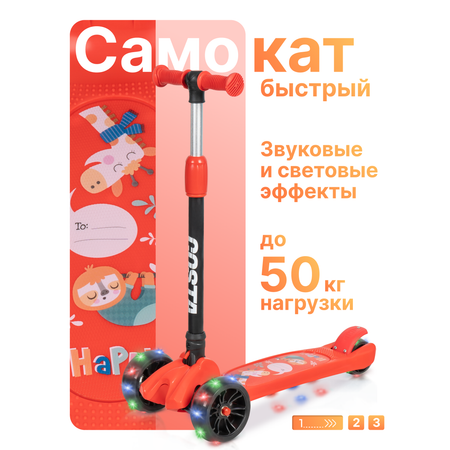 | Конструкция самоката: | с регулировкой руля, складной, со светящимися колесами |