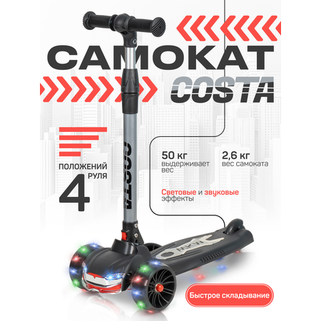 Подарите своему ребенку радость активных прогулок с ярким и функциональным трехколесным самокатом Costa CG777!