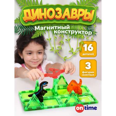 Конструктор ON TIME Динозавры магнитный 16 дет.