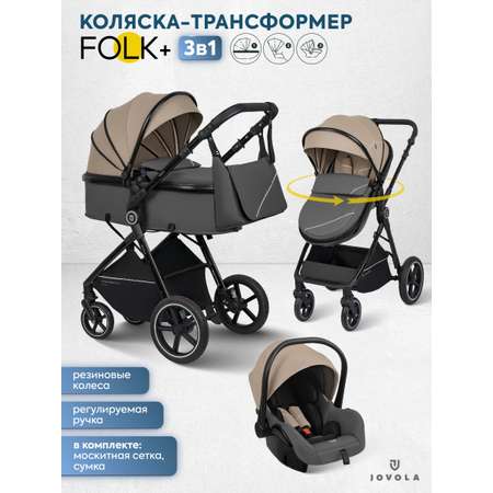Цена на Коляска трансформер JOVOLA Folk+ 3в1 бежевый - 19871 ₽.