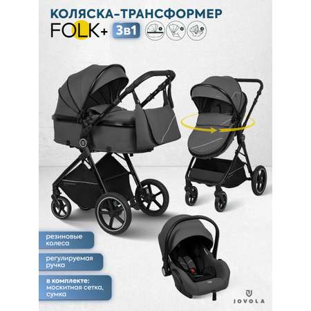 Цена на Коляска трансформер JOVOLA Folk+ 3в1 серый - 18215 ₽.