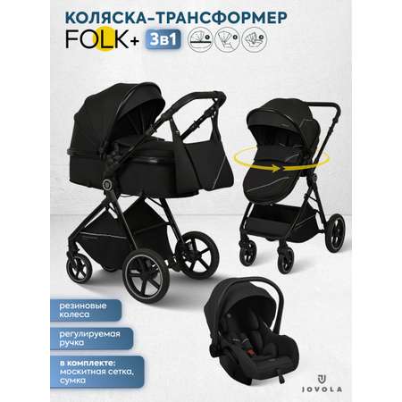 Цена на Коляска трансформер JOVOLA Folk+ 3в1 черный - 18215 ₽.
