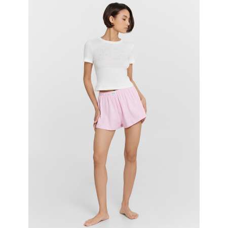 Пижама для женщин Mark Formelle . Женский комплект пижама с шортами и футболкой от белорусского бренда Mark Formelle. Футболка прямая укороченная и свободная, без воротника, с короткими рукавами и немного спущенной линией плеча. Шорты свободные, с завышенной посадкой и резинкой внутри. Милая демисезонная модная пижамка в костюмном стиле для отдыха, как одежда для дома и сна. Классическая верхняя часть в строгом стиле, закрытая. Низ открытый, игривый, укороченная длина шорт добавляет изюминку всему комплекту. Костюм с шортами подойдет для девушек подростков, а также для взрослых женщин плюс сайз (plus size) больших размеров. Марк Формэль - гарантия качества собственного производства в Беларуси