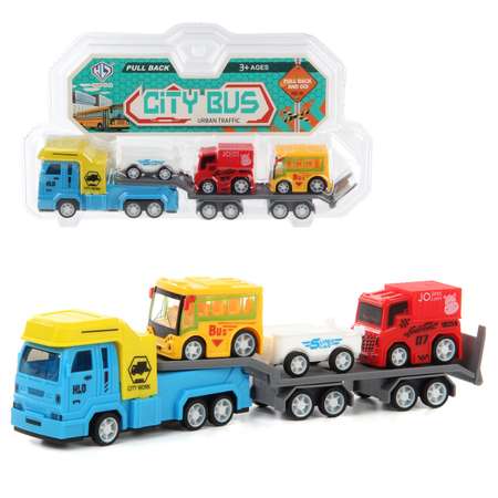 Набор машинок - мечта каждого маленького автолюбителя. В комплект входит автовоз, 2 машинки, прицеп.