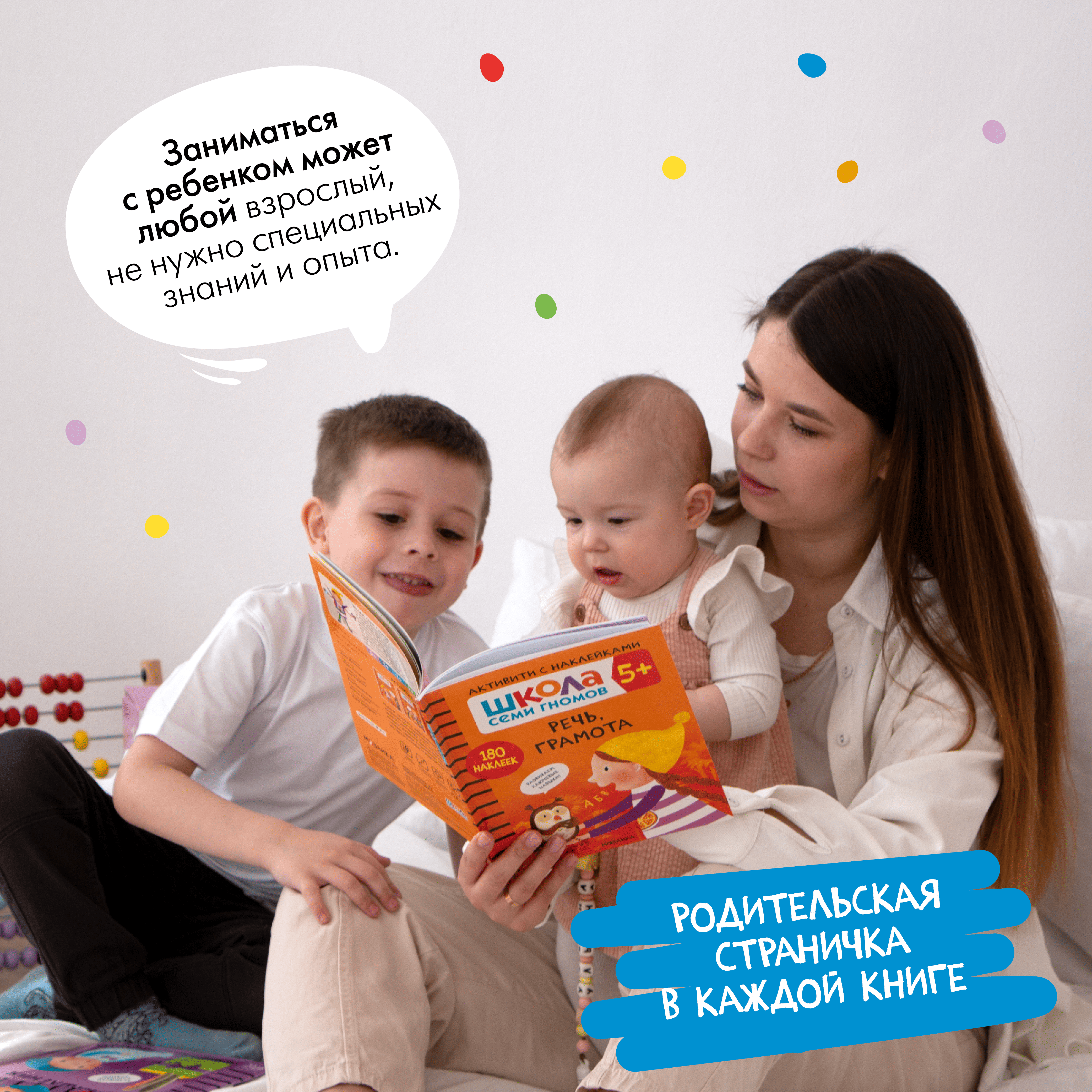Серия «Школа Семи Гномов. Активити с наклейками» создана как расширение и дополнение базового курса «Школы Семи Гномов». Она отвечает за тренировку и закрепление знаний по основным образовательным областям. Развитие логического, математического мышления, грамоты и речи, знакомство с окружающим миром — это фундамент дошкольного обучения. Эти темы требуют особого внимания, и активити с наклейками идеально подходят для их проработки.