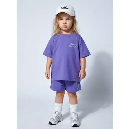 Комплект для девочки футболка и шорты с надписью. Комплект изготовлен из ткани кулирная гладь, 100% хлопок. Шорты на шнуровке. Модель свободного кроя, поэтому ребенку в таком комплекте будет комфортно в теплую погоду, а натуральные материалы позволят коже дышать.
