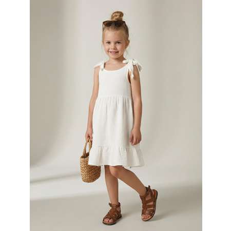 Платье для девочки без рукавов. Изготовлено из ткани муслин 100% хлопок. Платье подходит для детского сада, прогулок и для дома. Благодаря легкости и натуральному составу материала этот сарафан для девочки будет прекрасным вариантом одежды в жаркое время года, для прогулок по морскому побережью. Вашему ребенку понравится носить сарафан.