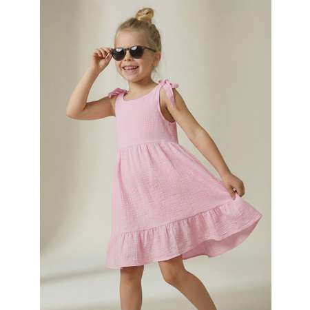 Платье для девочки без рукавов. Изготовлено из ткани муслин 100% хлопок. Платье подходит для детского сада, прогулок и для дома. Благодаря легкости и натуральному составу материала этот сарафан для девочки будет прекрасным вариантом одежды в жаркое время года, для прогулок по морскому побережью. Вашему ребенку понравится носить сарафан.
