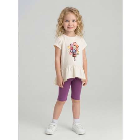 Комплект одежды для девочки KUZA состоит из туники с коротким рукавом и коротких лосин. Идеальная одежда для девочки в детский садик и для прогулок на улице летом. Комплект для девочки изготовлен из кулирки с эластаном (92% хлопок, 8% эластан), идеально подходит для активного образа жизни вашей маленькой принцессы.