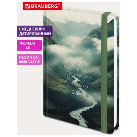 "Откройте для себя идеальный инструмент для планирования с датированным ежедневником 2026 от BRAUBERG ""Спокойствие"". Этот ежедневник, размером 145х203 мм, станет надежным спутником как для мужчин, так и для женщин, обеспечивая продуманное планирование на весь год. Твердая обложка с матовой пленкой и резинка-фиксатор делают блокнот долговечным и защищенным от случайного раскрытия, что важно для активных людей.