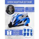 Шлем детский с защитными накладками (наколенники, налокотники и защита на ладони) - предназначен для защиты головы от ударов при падениях и является обязательным атрибутом юных водителей на беговелах, роликах, самокатах и велосипедах.