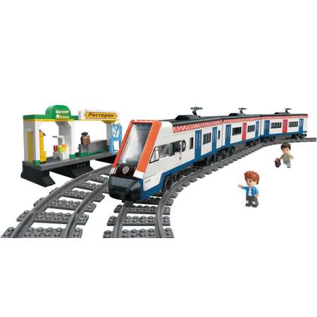 Композицию дополняет детализированная станционная платформа, оборудованная элементами инфраструктуры. На ней расположен ресторан, где пассажиры могут перекусить перед отправлением, и небольшой магазинчик для покупок. Фигурки людей позволяют создавать разнообразные сценки из жизни вокзала и поезда. Питание обеспечивает аккумуляторный блок. Конструктор подходит для развития воображения и мелкой моторики, предлагая широкие возможности для сюжетно-ролевых игр, где можно выступать в роли машиниста или просто путешественника, спешащего на свой поезд.