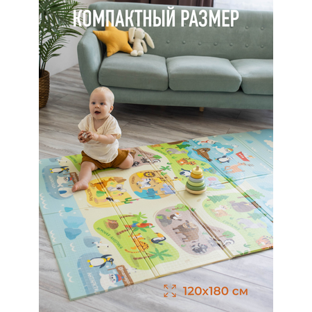 Ребенок сможет познакомиться с цветами, цифрами, видами животных в игровой форме. Развивающий коврик для малышей, как и коврик пазл, развивает мелкую моторику. Размер непромокаемого термоковрика 180х120 см, в сложенном виде - 40х60 см.