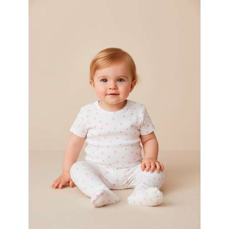 Мягкий и дышащий комплект для девочки, созданный для максимального комфорта. Футболка с коротким рукавом и удобные ползунки обеспечивают свободу движений. Натуральный хлопок гипоаллергенен, не раздражает кожу и отлично пропускает воздух. Универсальный белый цвет легко сочетается с другими вещами. Практичный и нежный набор для ежедневной носки, прогулок и особых моментов. Легок в уходе – можно стирать в машинке.