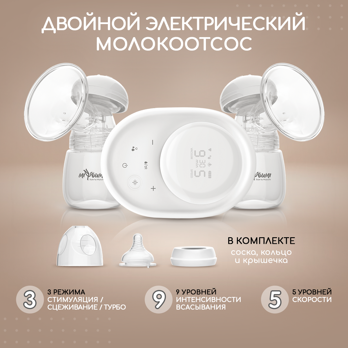 Молокоотсос электрический беспроводной двойной - это лучшее решение для быстрого и безболезненного сбора молока! Очень многие из наших покупателей отмечают, что у них наладилась лактация и сильно прибавилось молока после использования данного аксессуара для кормления. Никаких неудобных проводов и трубок! Очень компактный, вы всегда можете взять его с собой в роддом и использовать в любом месте, на прогулке или в машине. Мощный мотор работает от емкого встроенного литиевого аккумулятора 1200 мАч (до 2,5 часов непрерывной работы), заряжается от всех возможных источников питания через USB кабель. Молокосос имеет не 2, а 3 фазы работы: Массаж, Сцеживание и Смешанный режим для самой чувствительной груди. Каждый режим работы имеет по 9 уровней интенсивности. Вы без труда найдете самый комфортный. За счет функции массажа и полной имитации сосательных движений ребенка, процесс сцеживания происходит быстро и безболезненно. Отлично подойдет для профилактики и предотвращения лактостаза. Воронка с силиконовой окантовкой отлично прилегает к груди, создавая безупречный вакуум, имеет универсальный угол охвата и подойдет для всех размеров груди. Молокоотсос имеет удобный сенсорный блок управления с подсветкой, индикатором заряда, таймером и функцией памяти выбранных ранее настроек. Работает тихо (50 дцб), что позволяет использовать его в любое время суток даже когда рядом спит малыш. Минимум деталей, очень легко разбирать, собирать и мыть. Молокоотсос выполнен из самых современных и безопасных материалов. Никакого неприятного запаха от пластика. Не содержит Бисфенол А. В комплекте бутылочка 180мл из чистейшего пластика PP со стандартным разъемом, которая подходит к большинству известных брендов, таких как Avent , Medela и другие, соска из пищевого силикона, кабель USB, инструкция на русском, дополнительный клапан, гарантийный талон. Доставляется в доп. транспортной коробке. Гарантия 1 год.Цены в интернет-магазине могут отличаться от розничных магазинов.