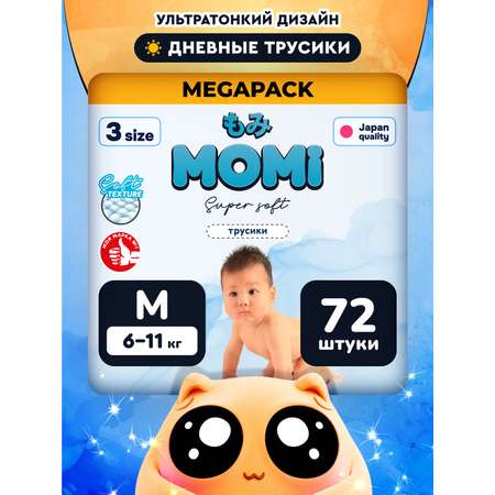 Ультрамягкие и легкие подгузники трусики для малышей MOMI Super Soft разработаны в Японии с использованием высококачественных материалов. Super Soft спроектированы с максимальным вниманием к каждой детали – это идеальное сочетание нежности и надежности. Ультрамягкий внутренний слой обеспечивает максимальный комфорт, а благодаря своей легкости подгузники обеспечивают малышу полное ощущение свободы. Мягкость Super Soft - это не просто слова, а забота, которую можно ощутить прикосновением. Тонкий и легкий дизайн подгузников MOMI делает их идеальным выбором для активных малышей. Они позволяют ребенку ползать, стоять и бегать, не мешая ему наслаждаться окружающим миром. Одним из ключевых преимуществ этих подгузников является их уникальная способность мгновенно и эффективно впитывать влагу, обеспечивая надежную защиту на протяжении длительного времени. Благодаря инновационным технологиям и усовершенствованной конструкции, подгузники эффективно удерживают жидкость. Уникальный супер-дышащий слой распределяет влагу равномерно, а оборочки вокруг ножек предотвращают протекание. Индикатор наполнения поможет вам определить, когда пришло время сменить трусики. Супер-мягкий эластичный поясок обеспечивает идеальную посадку и свободу движений. MOMI придерживается принципа использования только качественных материалов для производства подгузников. Это обеспечивает нежность и мягкость для чувствительной кожи малышей, минимизируя риск раздражений и аллергических реакций. Трусики MOMI Super Soft доступны в размерах M, L, XL, XXL. Бренд Momi стремится создать продукты, которые не только обеспечивают комфорт, но и сохраняют окружающую среду. Подгузники Momi производятся с соблюдением принципов экологической ответственности, чтобы минимизировать негативное воздействие на природу. Momi - это бренд, который объединяет японскую технологию, качество и любовь к малышам. MOMI Super Soft - это не только подгузники, но и символ заботы о самом драгоценном моменте в жизни Вашего ребенка - детстве.