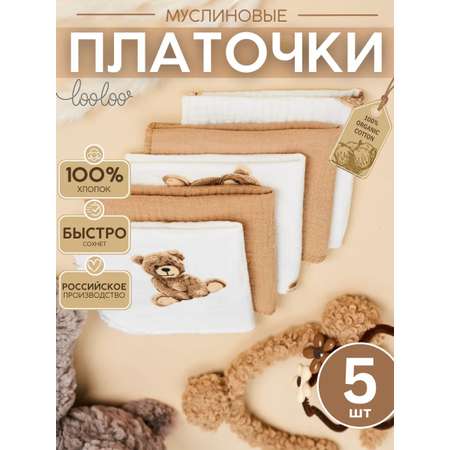 Цена на Платок Loo-Loo бежевые муслин 5 шт. - 363 ₽.
