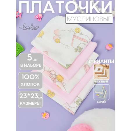 Цена на Платок Loo-Loo розовые муслин 5 шт. - 351 ₽.