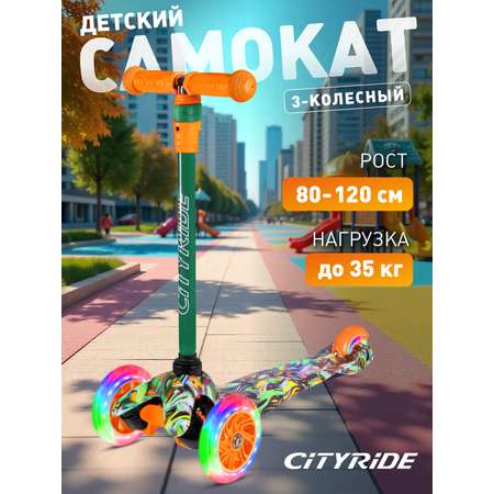 Самокат детский трехколесный CITYRIDE 120/76 со светящимися колесами CR-S4-05CD/OG