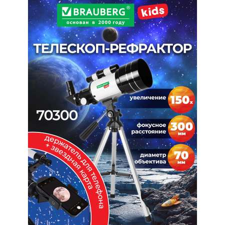 Телескоп астрономический BRAUBERG KIDS – отличный выбор для тех, кто хочет изучать космос с увлечением и комфортом. Этот телескоп детский с объективом 70 мм и фокусом 300 мм обеспечивает увеличение до 150х, позволяя рассматривать звезды и планеты с высокой четкостью. Благодаря комплектации с окулярами, лунным фильтром и видоискателем настройка прибора станет простой и удобной. Трипод и диагональное зеркало обеспечат устойчивость и комфорт при наблюдениях. Подарки детям в виде карты звездного неба и держателя для телефона делают использование телескопа еще интереснее. Такой телескоп астрономический станет прекрасным подарком мальчику или девочке, вдохновляя на изучение космоса и раскрывая тайны звезд и планет. Этот телескоп детский – не просто трубка для наблюдений, а настоящее окно в мир вселенной.