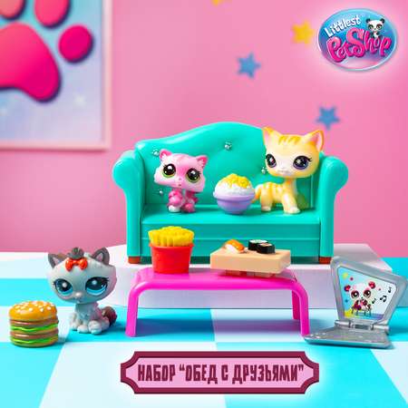 Главные герои набора "Обед с друзьями" — три котика разных цветов, которые могут похвастаться новой для серии LPS характеристикой — они умеют качать головами! С помощью аксессуаров из набора можно придумать множество интересных историй. Диван и стол помогут организовать уютные встречи, где котики будут делиться своими историями и планами. Ноутбук пригодится для работы или учебы, а бургер, карамельный попкорн, суши и картофель фри станут основой для веселого застолья или перекуса после активного дня.