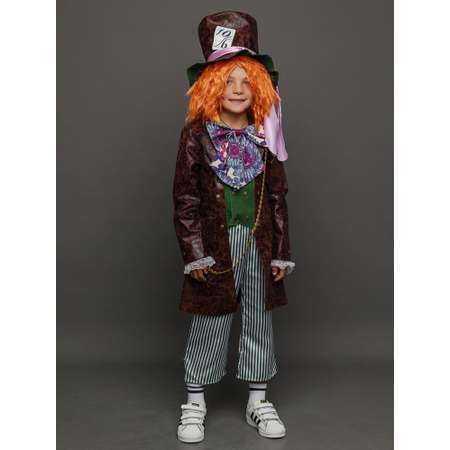 Костюм Безумный Шляпник для косплея, новогоднего утренника и тематического дня Рождения. Эффектный образ для детей 6-12 лет. В комплект входит камзол, бриджи, шляпа.