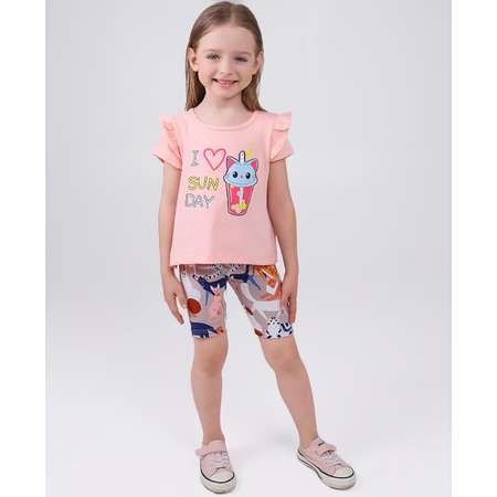 Комплект для девочки футболка и велосипедки с принтом. Костюм детский изготовлен из ткани кулирка, велосипедки с добавлением лайкры. Футболка детская из 100% хлопка. Костюм для девочки подходит для прогулок, для дома и детского садика.