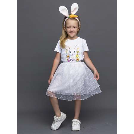 Карнавальный костюм для девочки Зайка. Костюм состоит из пышной юбки на резинке, футболки с коротким рукавом, ободка с ушками и морковкой. Подойдет на новогодний и детский утренник в садике, для праздничной ёлки, карнавального вечера, фотосессии и просто нарядиться в гости.