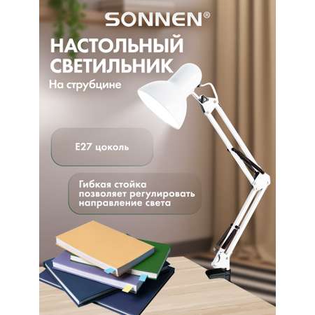 "Настольная лампа-светильник SONNEN TL-006 — идеальное решение для комфортного освещения комнаты, рабочего стола или места для учебы школьника. Этот светильник настольный оснащен удобной струбциной, позволяющей надежно закрепить лампу на столе без лишнего места. Высота настольной лампы 50 см и возможность вращения на 360 градусов с наклоном под любым углом обеспечивают комфортную подсветку для комнаты. Лампа настольная поддерживает любые лампочки с цоколем Е27 мощностью до 40 Вт, что позволяет выбрать оптимальный свет для ваших задач — от мягкого теплого до яркого холодного. Благодаря универсальности и удобству использования, этот светильник станет надежным помощником в создании правильного освещения в доме и офисе.