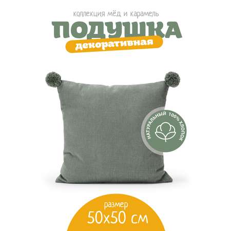 Подушка декоративная с помпошками "Пыльный мох"